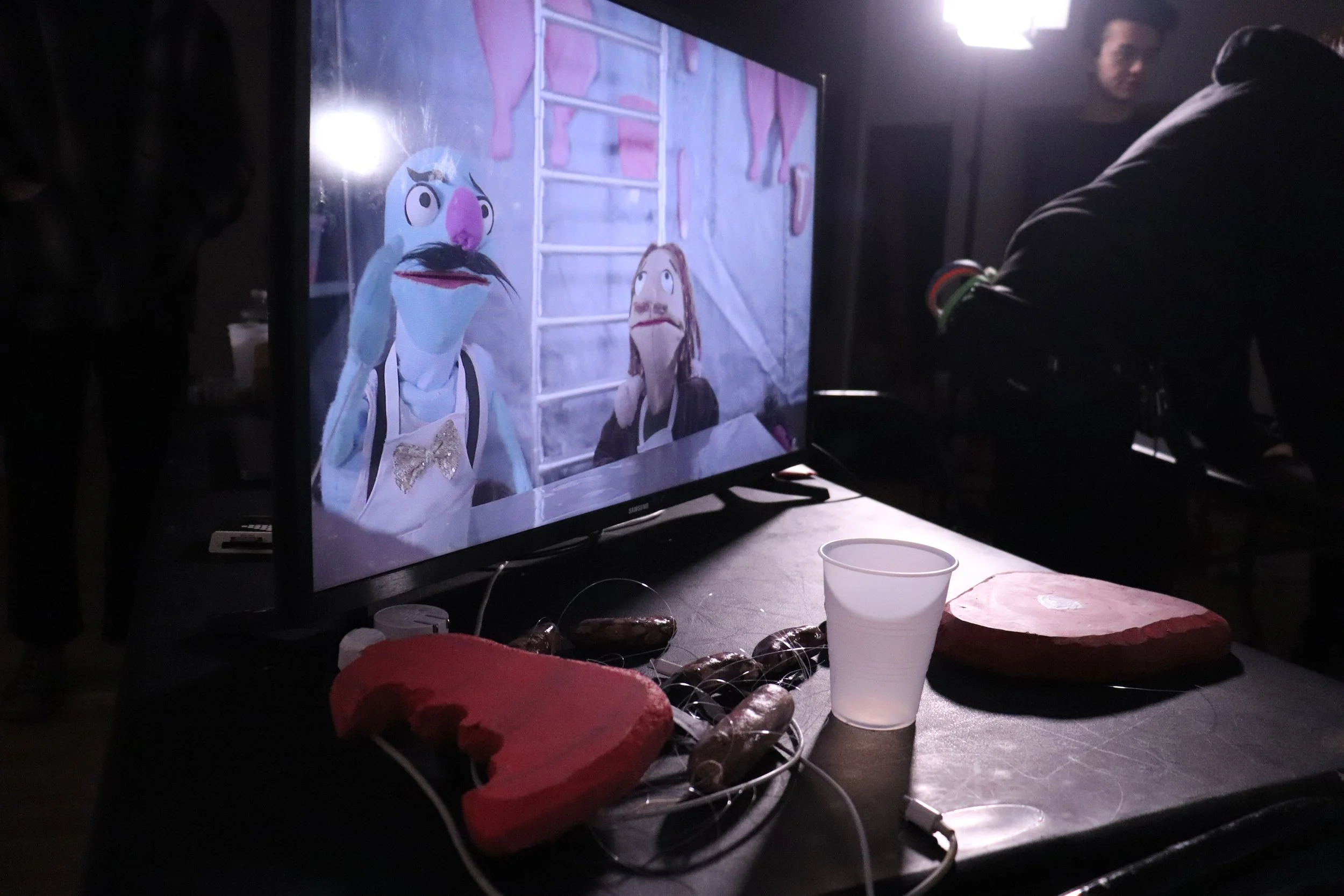 For the latest proof of concept, I created the collection of prop sausages (as seen in the middle picture), which I made completely by hand. I also helped make George and Fruitcake, two of the puppets featured in the most recent shoot.